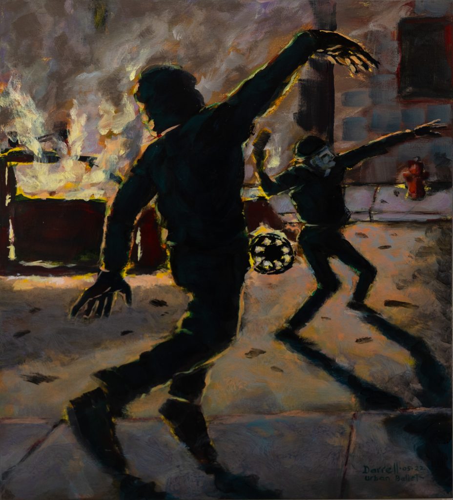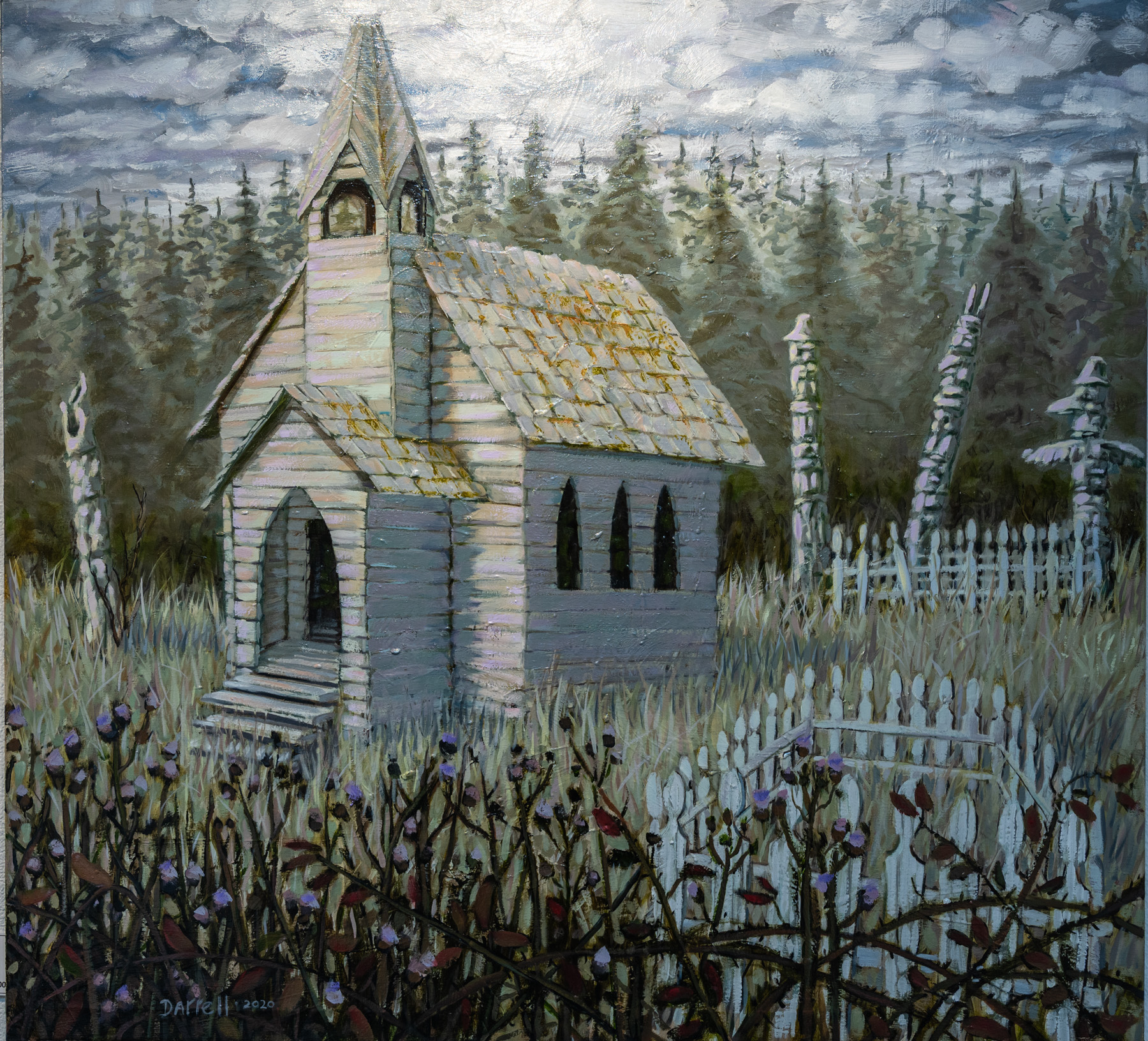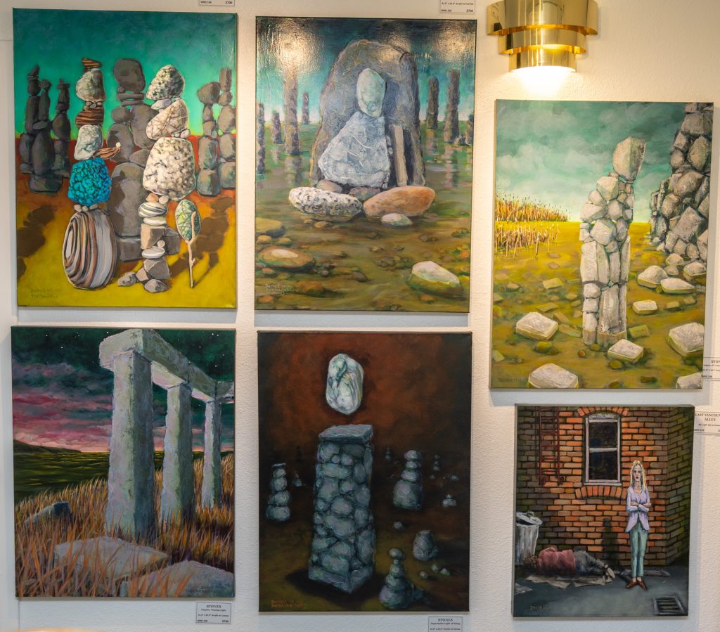 Wyant paints with acrylic and oil on canvas and also works with sculptures and multimedia. He was born in Prince George, raised in the Lower Mainland, and now lives with his artist wife in Oliver.