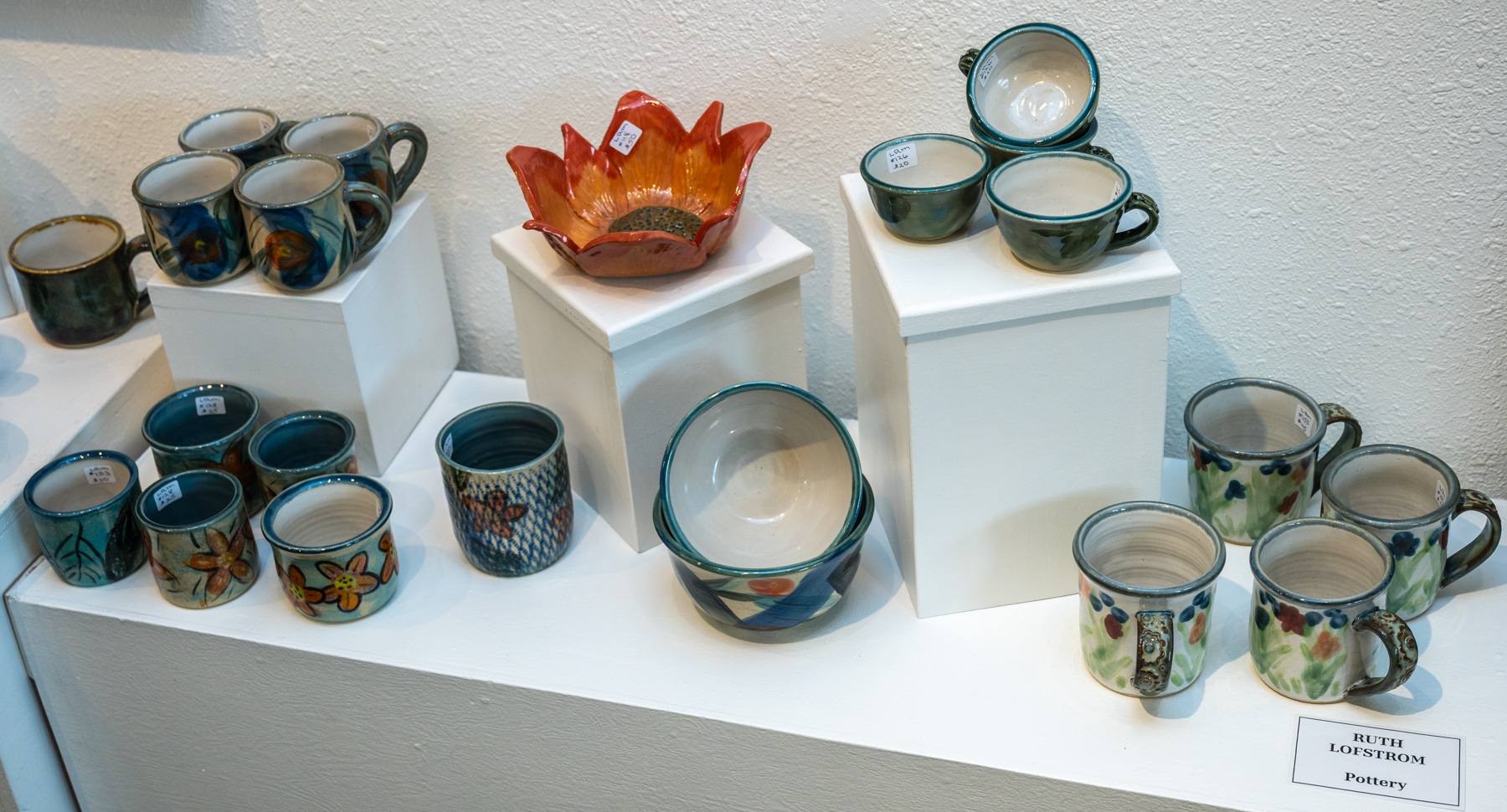 Lofstrom grew up in Fernie and has been doing pottery on and off for the last 30 years. She is a member of the Osoyoos Potters and she enjoys working on the wheel as well as hand building.